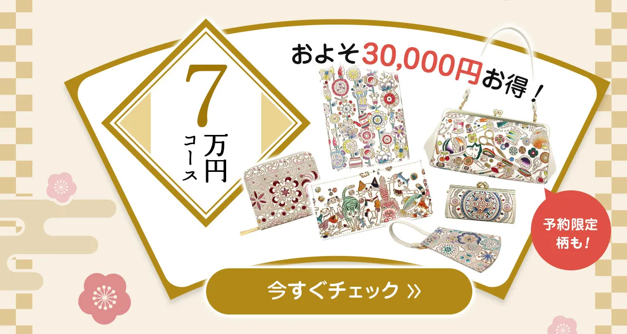 【福袋7万円コース】 ●全6点入り ●保証アイテム:ひとえパスカードホルダー(絢爛柄)/ぐるっとファスナーの長財布/二つ折りファスナーミニ財布 [T7-02]