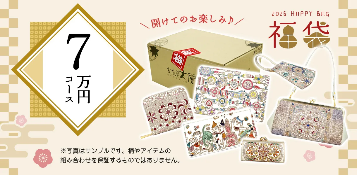 【福袋7万円コース】 ●全6点入り ●保証アイテム:ひとえパスカードホルダー(絢爛柄)/ぐるっとファスナーの長財布/二つ折りファスナーミニ財布 [T7-02]