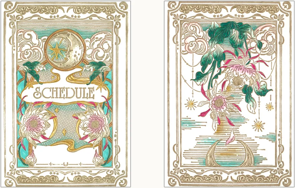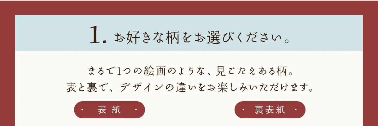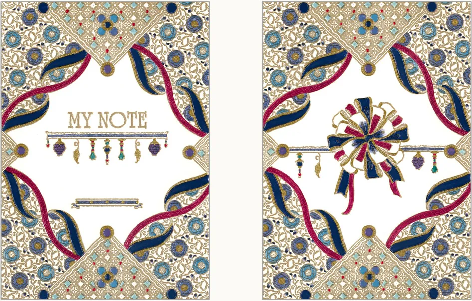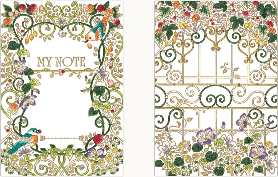 世界にひとつだけのオーダーノートをあなたのためにお作りします。 表紙と裏表紙で版を変えた手の込んだアイテムは、印象の異なる華やかなラインナップ。5種類から選べる「タイトル」や箔押しでの「名入れ」も標準…