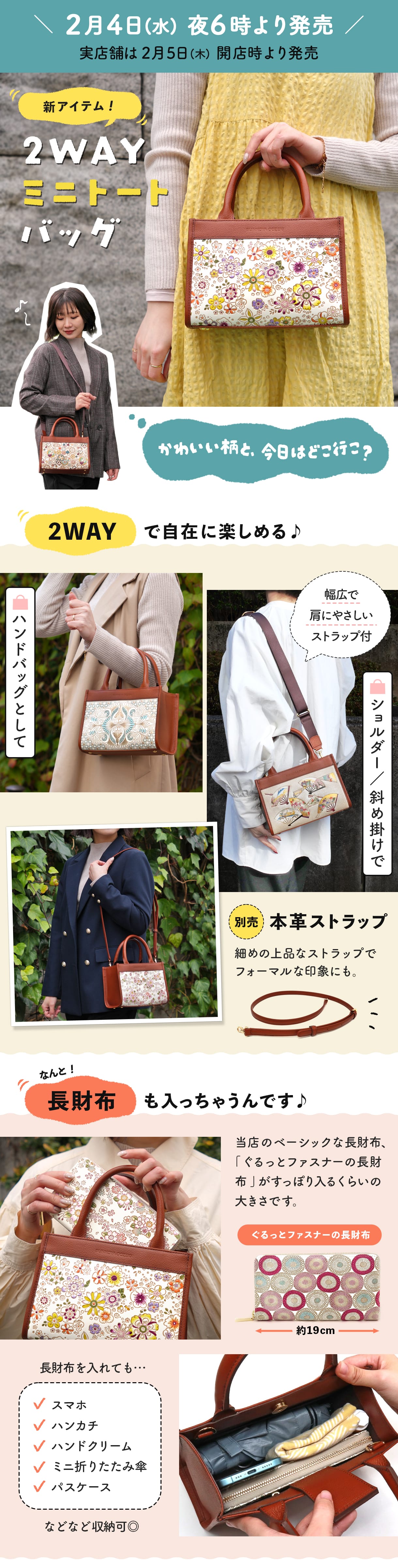 販売期間 : 2026年02月04日18:00 ~無地のバッグが多い中、ひときわ目を惹く柄トート。ハンド・ショルダー/斜め掛けの2way仕様。 コンパクトながら広めのマチで、スマホやコスメポーチ、当店の「ぐるっとファスナーの長財布」まで収納可能。 …