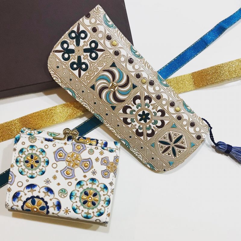 みつばちは大好きな柄で、限定パープルの箱まち小銭入れも気に入って使っています。デザインの様々なお花は洋風な感じで、菊をイメージさせる一番目立つお花は、金色が効果的な少し和風の印象。どちらのカラーも可愛らしくてシックなので、幅広い年齢層で使えると思います。