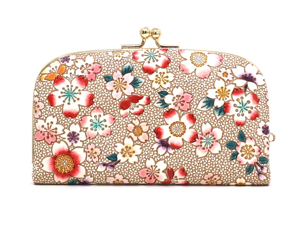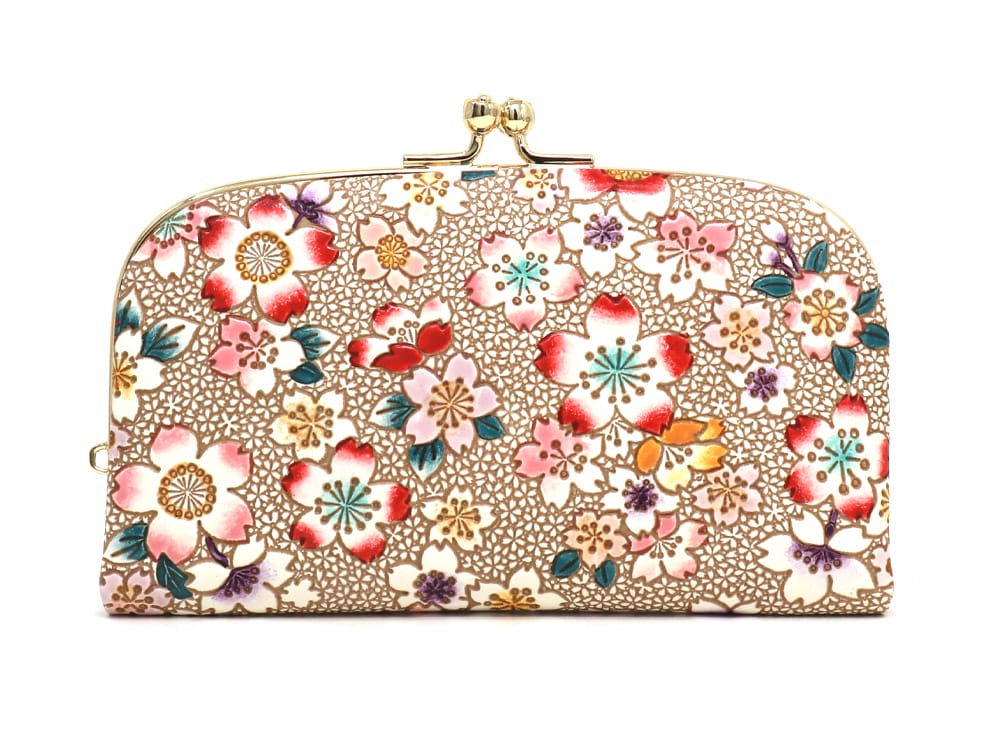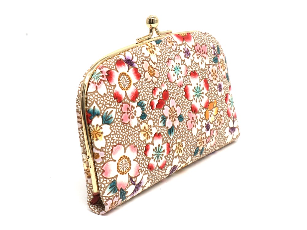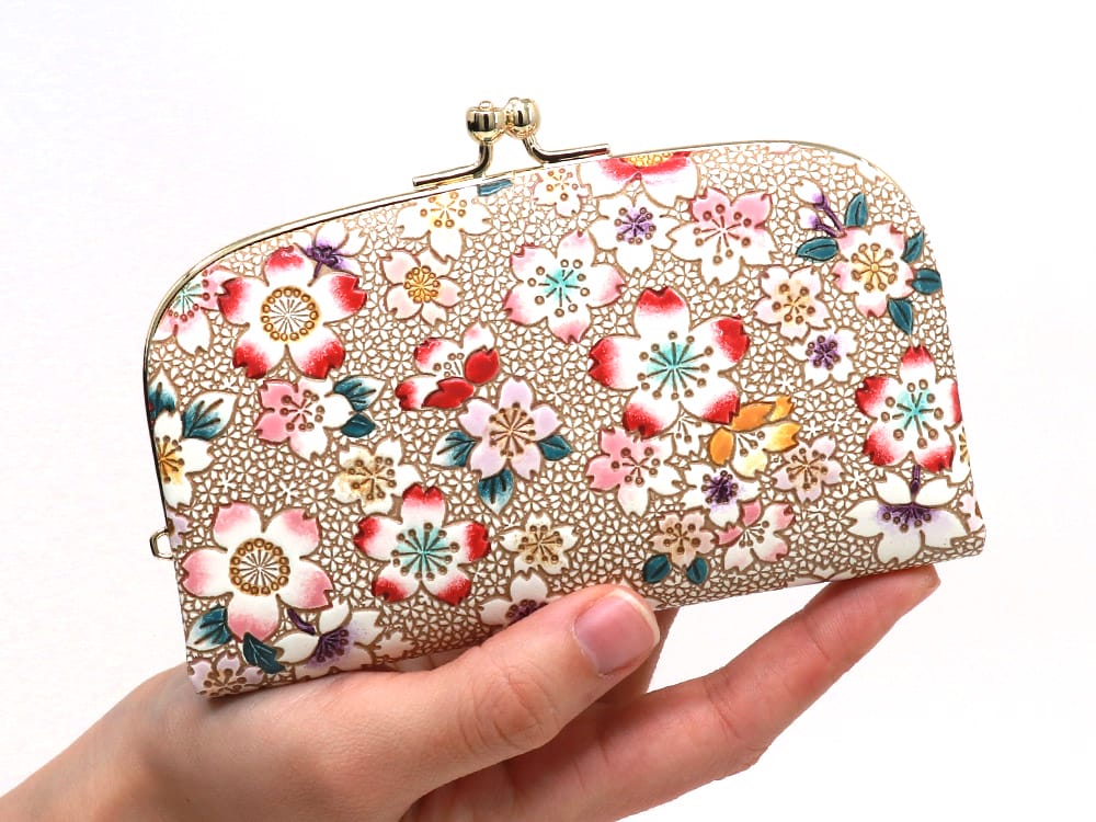 薄くて使いやすいがま口です。バッグの中でもかさばらず、帯にもはさめる薄さで和装にも最適。