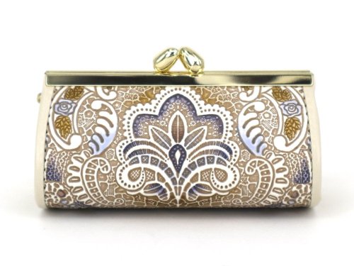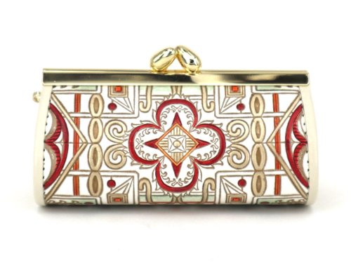 口金のゴールドが上品。両サイドはアイボリーの無地革にパイピング飾り