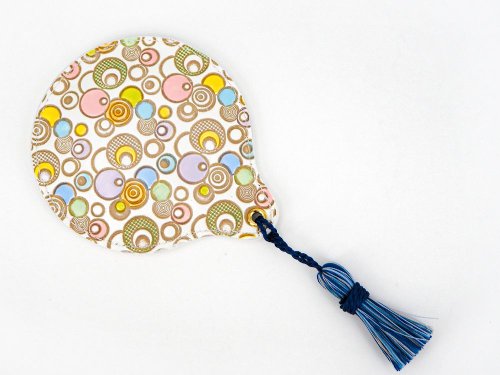 バッグの中に入れておいても邪魔にならないサイズ、軽さで、バッグの中でも探しやすいようにタッセルを付けました。お返しの品や、ちょっとした贈り物にも大人気。出すたびに楽しくなる、かわいい大人の手鏡です。