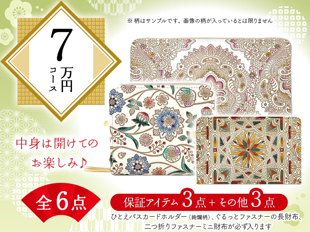 【福袋7万円コース】 ●全6点入り ●保証アイテム:ひとえパスカードホルダー(絢爛柄)/ぐるっとファスナーの長財布/二つ折りファスナーミニ財布