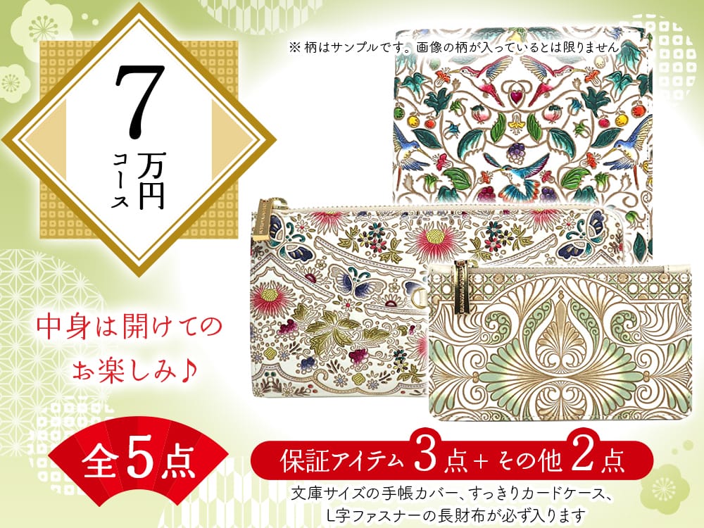【福袋7万円コース】 ●全5点入り ●保証アイテム:文庫サイズの手帳カバー/L字ファスナーの長財布/すっきりカードケース