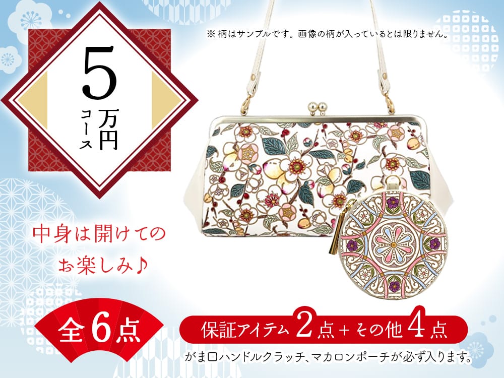 【福袋5万円コース】●全6点入り ●保証アイテム:がま口ハンドルクラッチ/マカロンポーチ