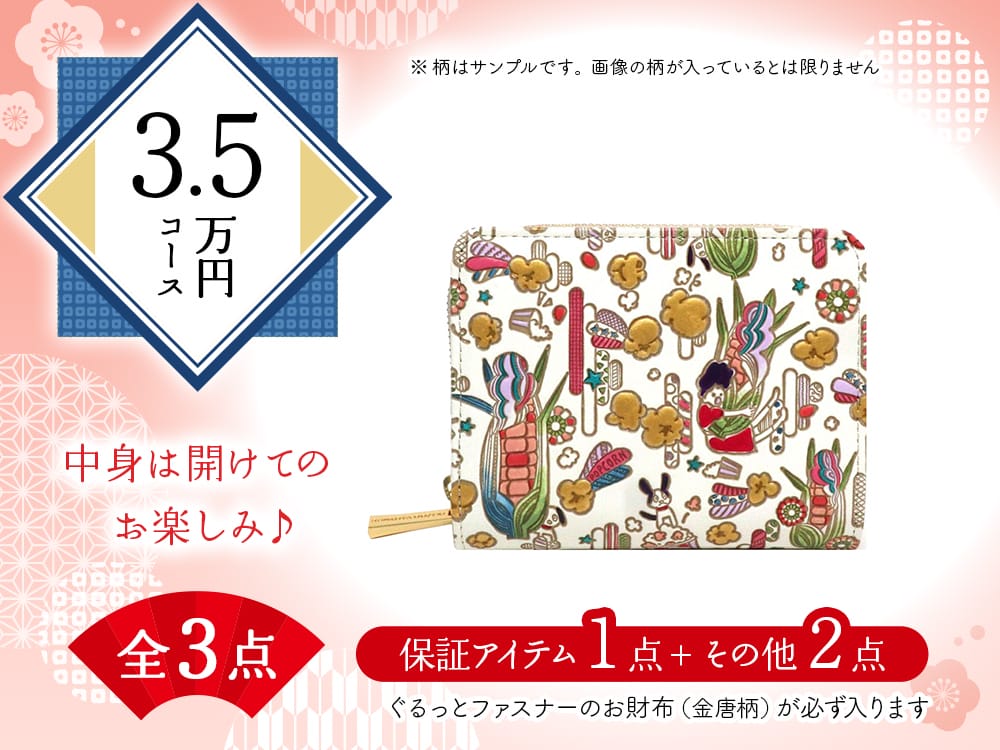【福袋3.5万円コース】●全3点入り ●保証アイテム:ぐるっとファスナーのお財布(金唐柄)