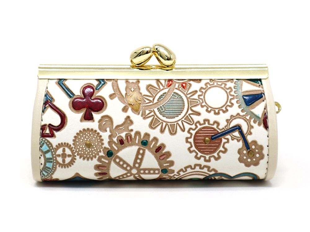 時の歯車<青緑> リップも入るハートまちの小物入れ(金唐柄)