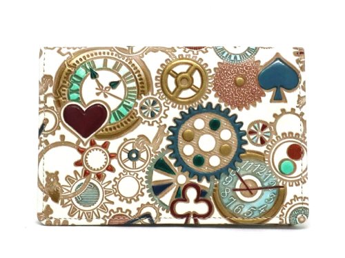 時の歯車<青緑> ぐるっとファスナーの長財布(金唐柄)[t]