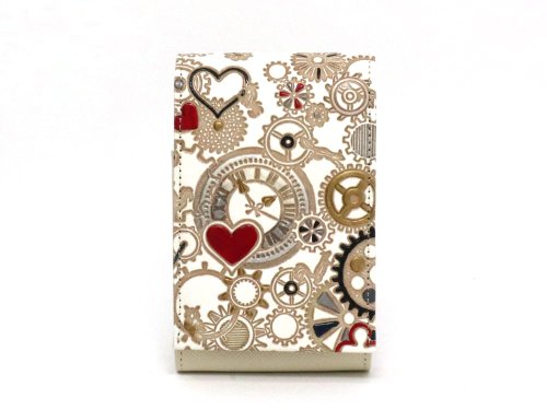 時の歯車<赤黒> 三つ折りミニ財布(金唐柄)[t]