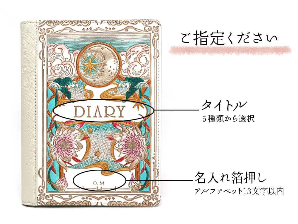 世界にひとつだけのオーダーノートをあなたのためにお作りします。 表紙と裏表紙で版を変えた手の込んだアイテムは、印象の異なる華やかなラインナップ。5種類から選べる「タイトル」や箔押しでの「名入れ」も標準セットなので、 大切な方への贈り物にもおすすめです。