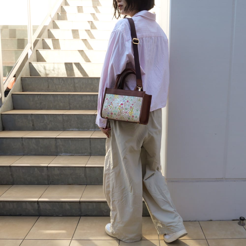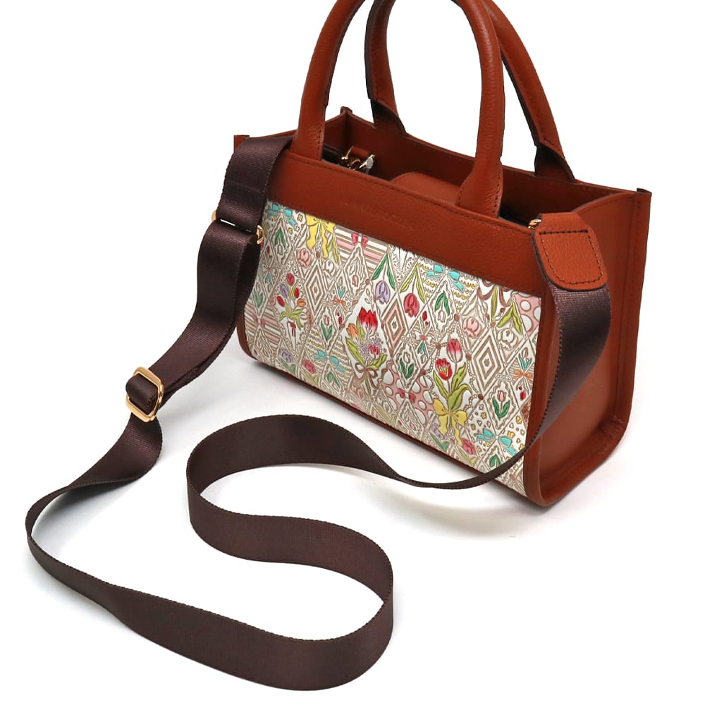 無地のバッグが多い中、ひときわ目を惹く柄トート。ハンド・ショルダー/斜め掛けの2way仕様。