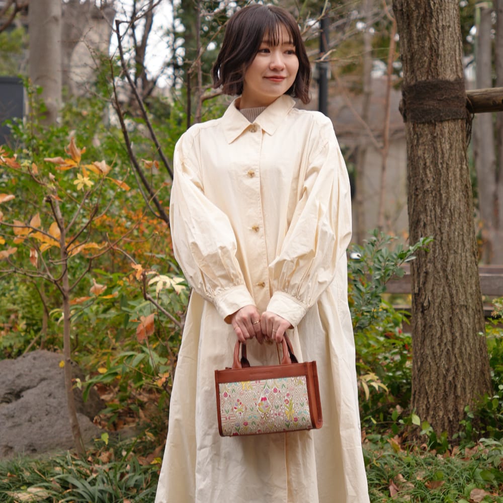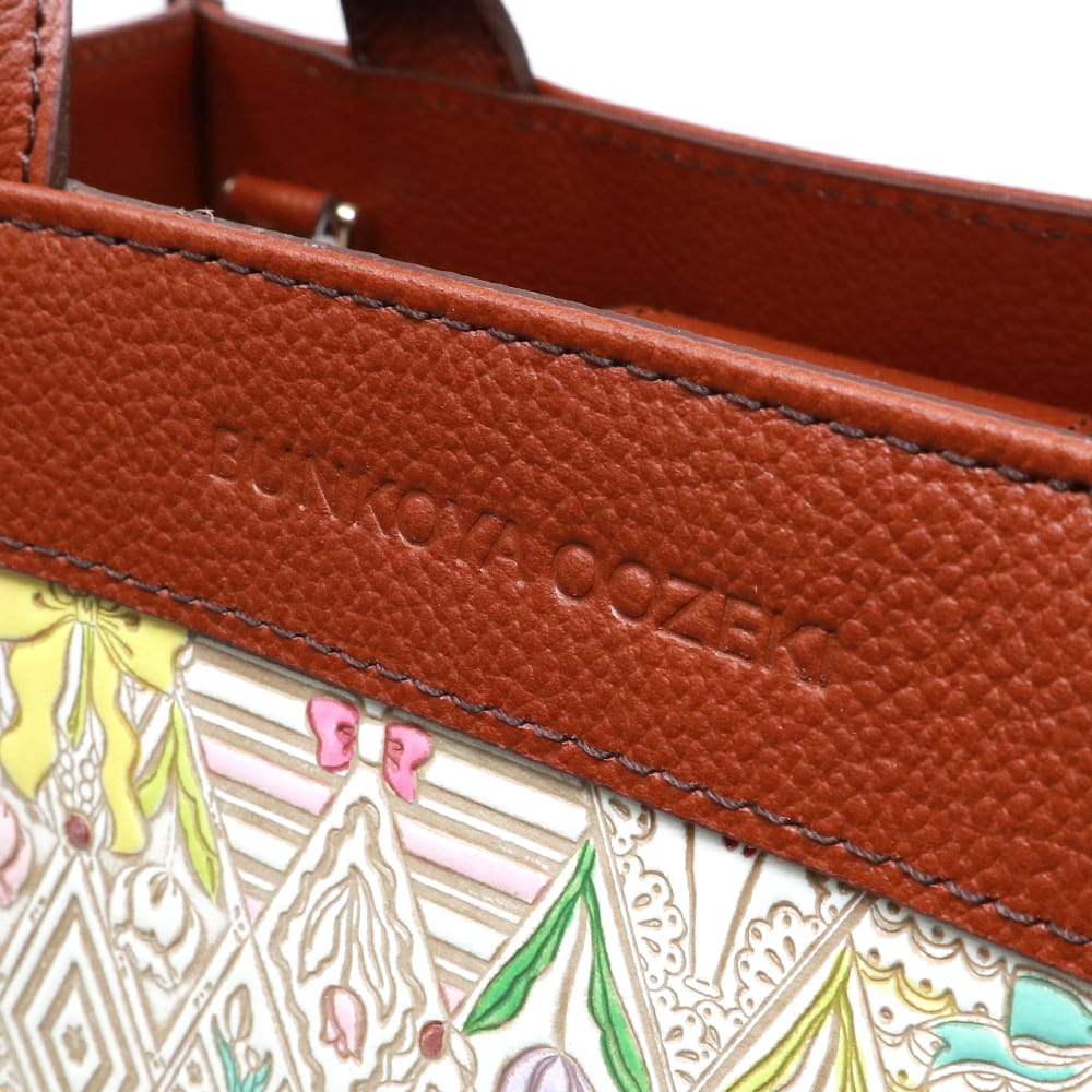 | 外寸 | 幅 (底部)約23.3cm(上部)約22.3cm,マチ約9.5cm,高さ約16cm,ハンドル高さ約11cm長さ約28cm |