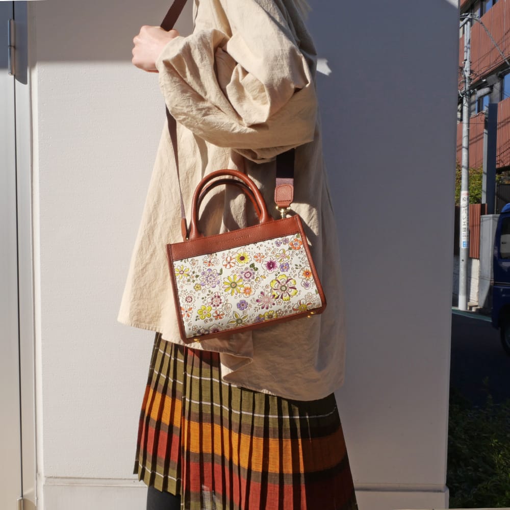 無地のバッグが多い中、ひときわ目を惹く柄トート。ハンド・ショルダー/斜め掛けの2way仕様。