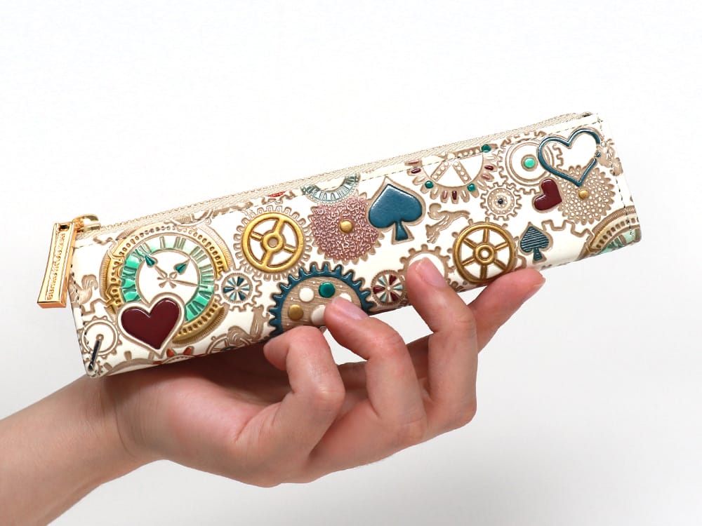 時の歯車<青緑> 三角マチのペンケース(金唐柄)