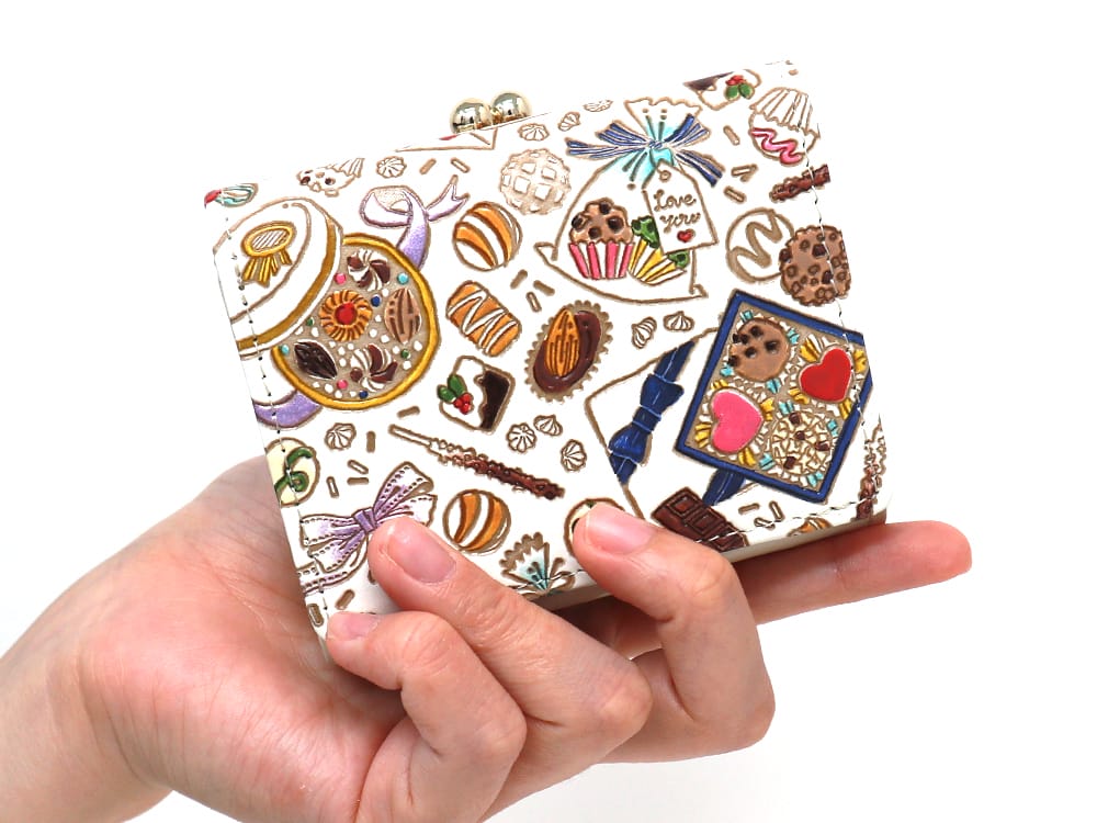 三つ折り財布なのに、がま口部分のマチもがばっと開き、小銭が見やすい仕様です。(カードは入れられません)