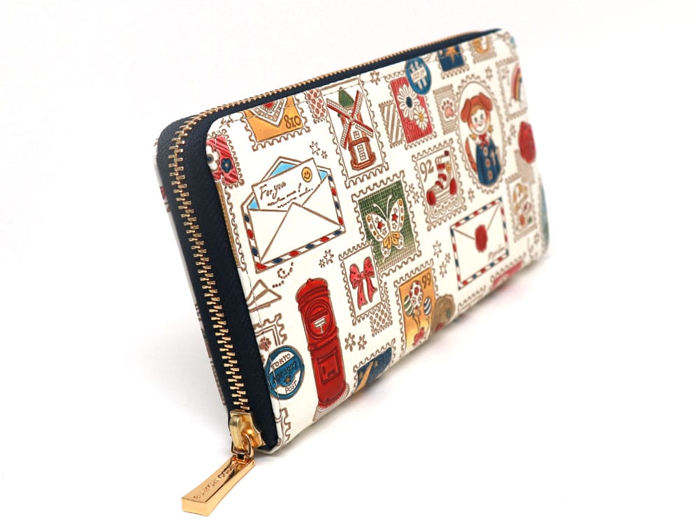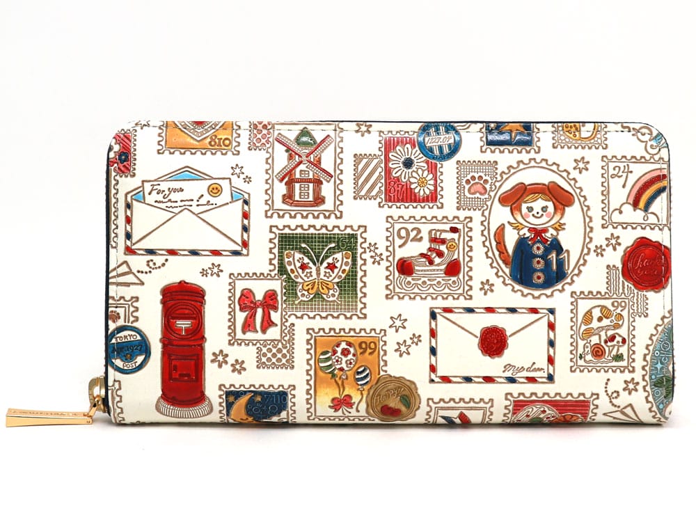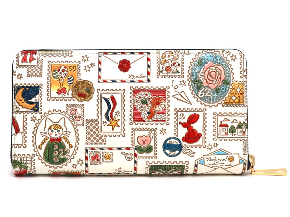 切手 ぐるっとファスナーの長財布[t]