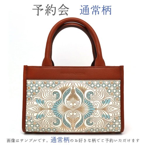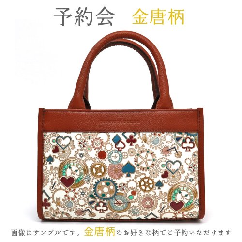 無地のバッグが多い中、ひときわ目を惹く柄トート。ハンド・ショルダー/斜め掛けの2way仕様。コンパクトながら広めのマチで、スマホやコスメポーチ、当店の「ぐるっとファスナーの長財布」まで収納可能。