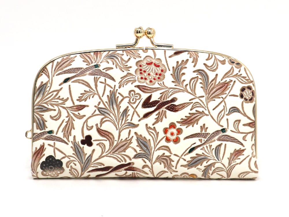 薄くて使いやすいがま口です。バッグの中でもかさばらず、帯にもはさめる薄さで和装にも最適。