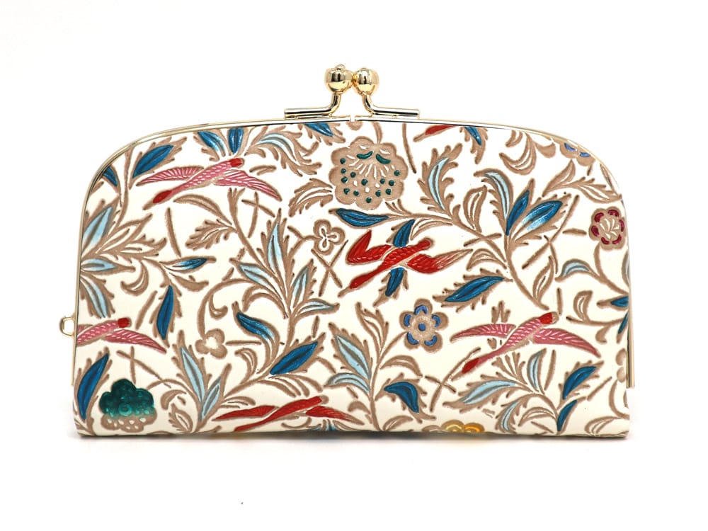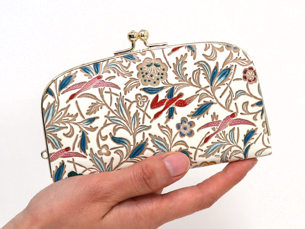 薄くて使いやすいがま口です。バッグの中でもかさばらず、帯にもはさめる薄さで和装にも最適。