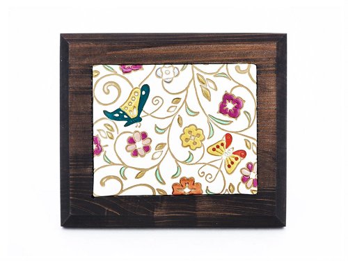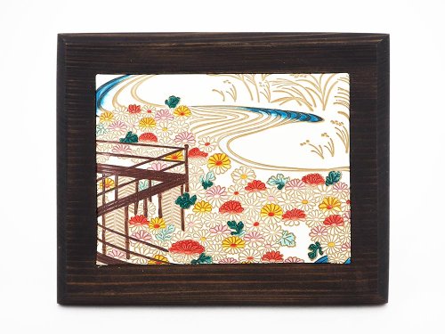 玄関先やお部屋に「飾って楽しむ文庫革」です。木曽の糸鋸名人「上村誉典(かみむらたかのり)」さんにオーダーした杉のフレームを使っています。木目が生きるようあえて塗装はせずワックス仕上げのみ。1点1点の木目の違いも楽しんでいただけます。木枠に文庫革をはめ込み、ぷっくりと膨らみを持たせて、触ってもお楽しみいただけるよう仕立てました。