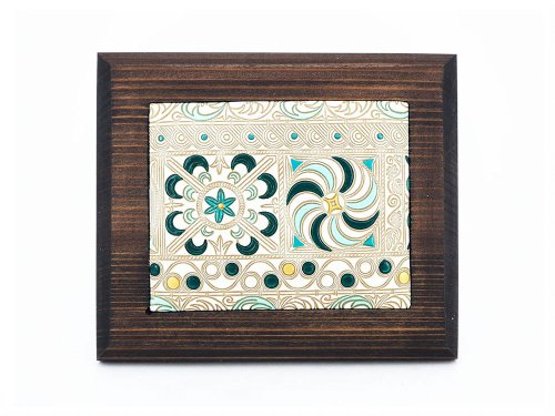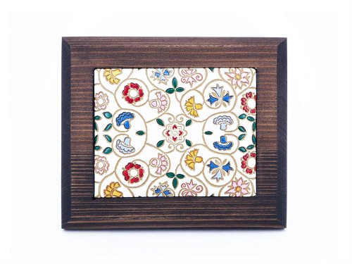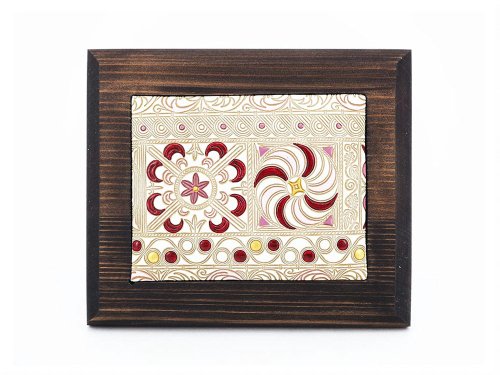玄関先やお部屋に「飾って楽しむ文庫革」です。木曽の糸鋸名人「上村誉典(かみむらたかのり)」さんにオーダーした杉のフレームを使っています。木目が生きるようあえて塗装はせずワックス仕上げのみ。1点1点の木目の違いも楽しんでいただけます。木枠に文庫革をはめ込み、ぷっくりと膨らみを持たせて、触ってもお楽しみいただけるよう仕立てました。
