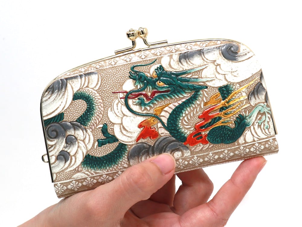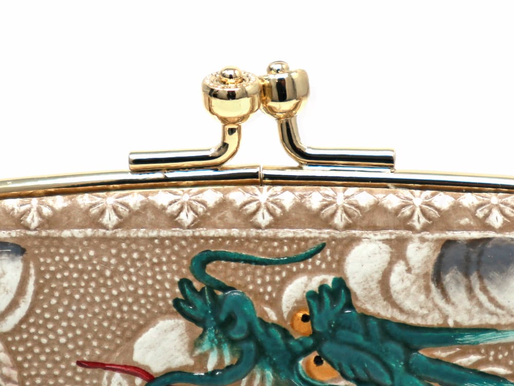 薄くて使いやすいがま口です。バッグの中でもかさばらず、帯にもはさめる薄さで和装にも最適。