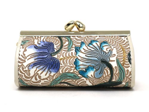 口金のゴールドが上品。両サイドはアイボリーの無地革にパイピング飾り