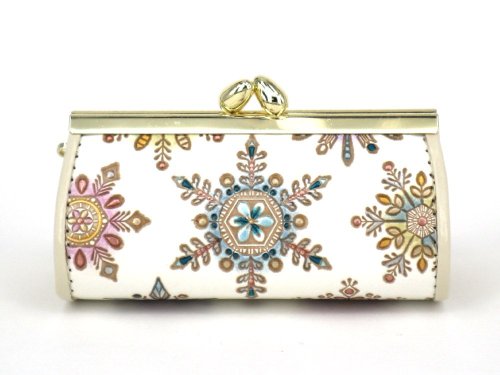 口金のゴールドが上品。両サイドはアイボリーの無地革にパイピング飾り