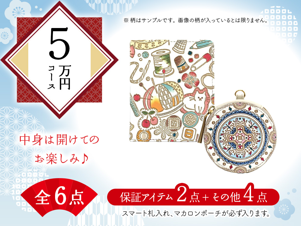 【福袋5万円コース】●全6点入り ●保証アイテム:スマート札入れ/マカロンポーチ
