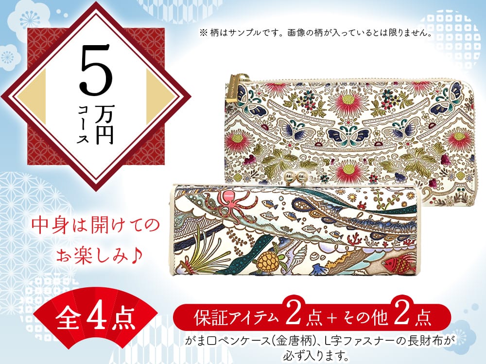 【福袋5万円コース】●全4点入り ●保証アイテム:がま口ペンケース(金唐柄)/L字ファスナーの長財布