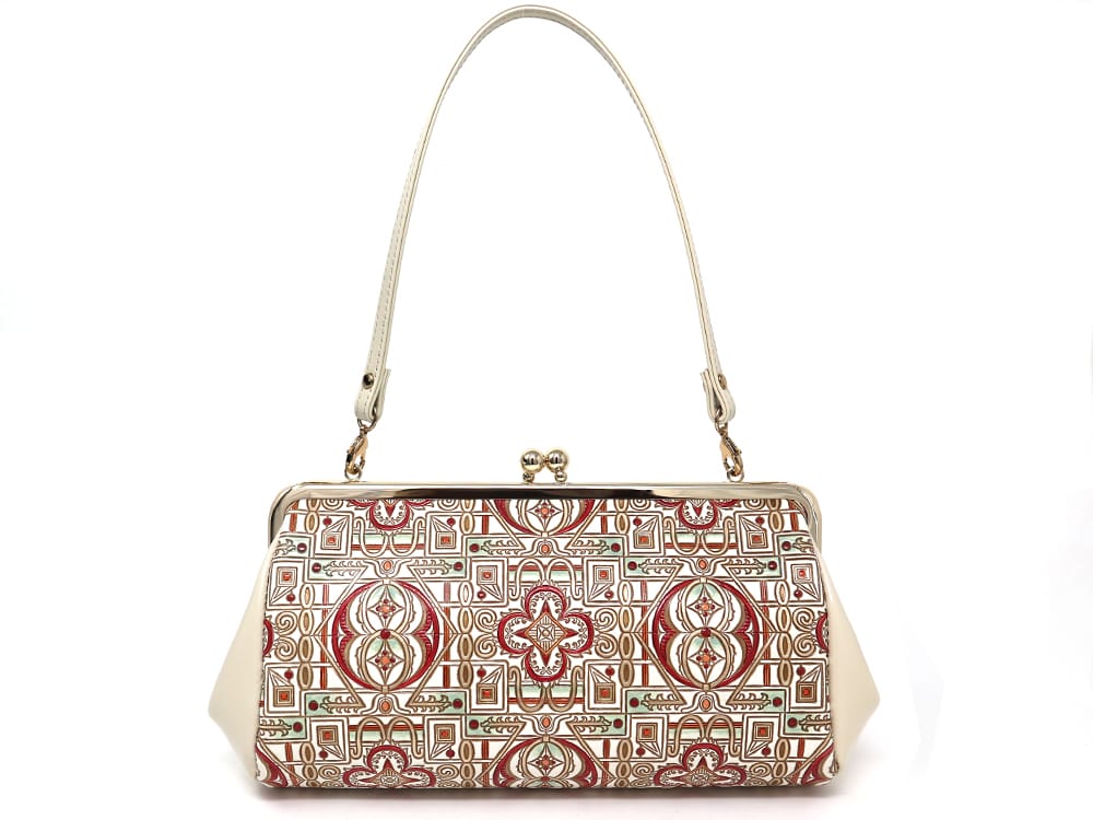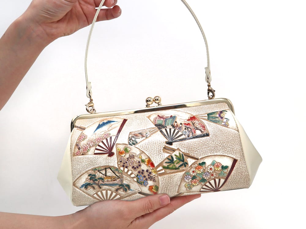 和装のとき、結婚式にお呼ばれしたとき、パーティーバッグとしても使えるサイズの、ハンドル付きのクラッチです。普段使いはもちろん、ドレス用にするか、和装用にするか…柄次第でいろいろなシーンで使えます♪